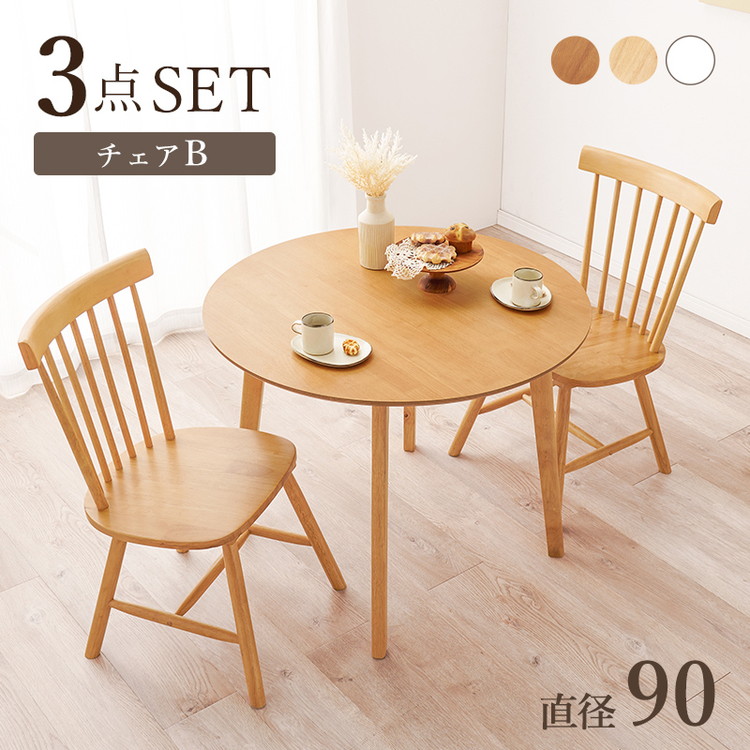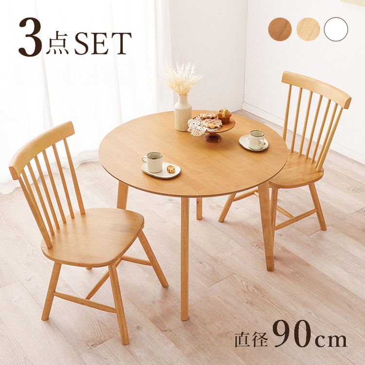 人気のウィンザーチェアと円形テーブルでカフェのような雰囲気になるダイニング3点セット