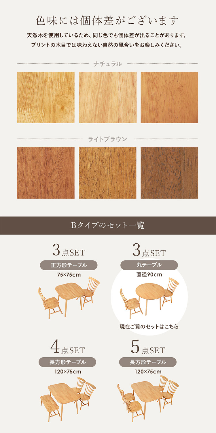 主材:天然木、天板:(ナチュラル、ライトブラウン)天然木化粧繊維板・(ホワイト)繊維板