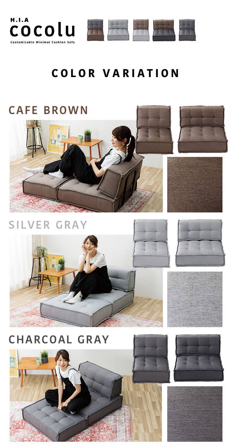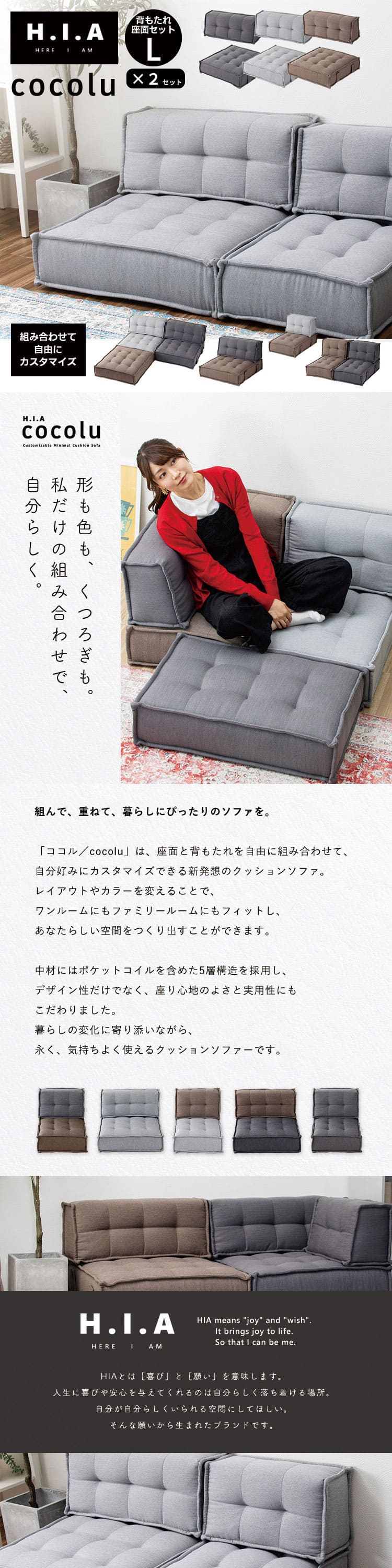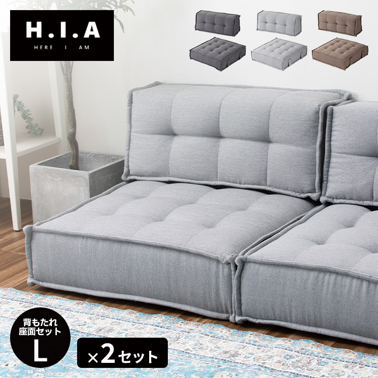 カスタマイズできるミニマルクッションソファ- Lサイズ 座面+背面 セット×2 座椅子 クッション フロアソファー 組み合わせ自由 HIA 代引不可