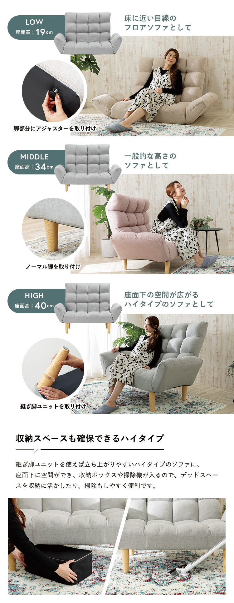 継ぎ脚ユニット使用時:40cm