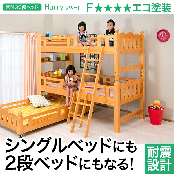 宮付きスライド3段ベッド【ハリー-HURRY】(3段 ベッド)