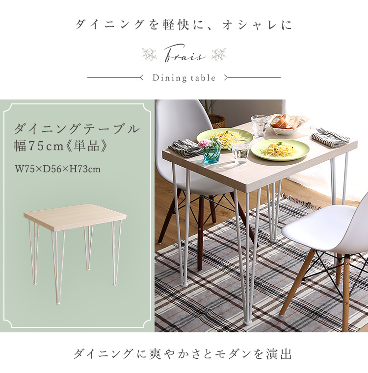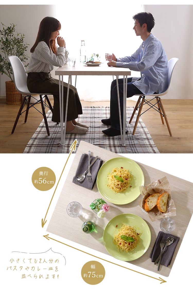さわやかなオシャレテーブル75cm幅 ダイニングテーブル アイアンフレーム 爽やか おしゃれ 北欧 韓国 幅75cm 1人暮らし カップル 可愛い カフェ 代引不可