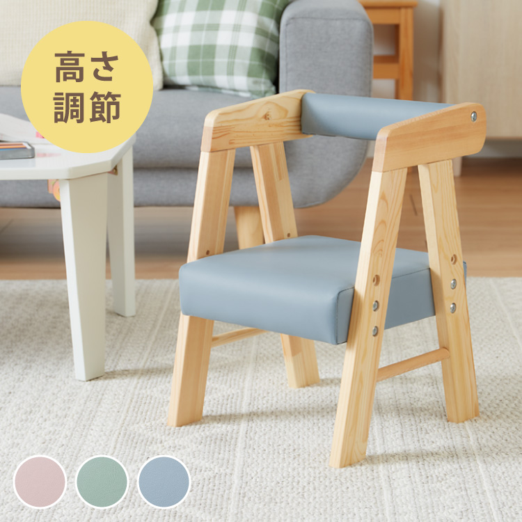 キッズチェア 木製 座面PVC 高さ調節可 肘付き ロータイプ 天然木 子供用椅子 コンパクト 省スペース 軽量 子ども 代引不可 レビュー&報告でガーゼタオル