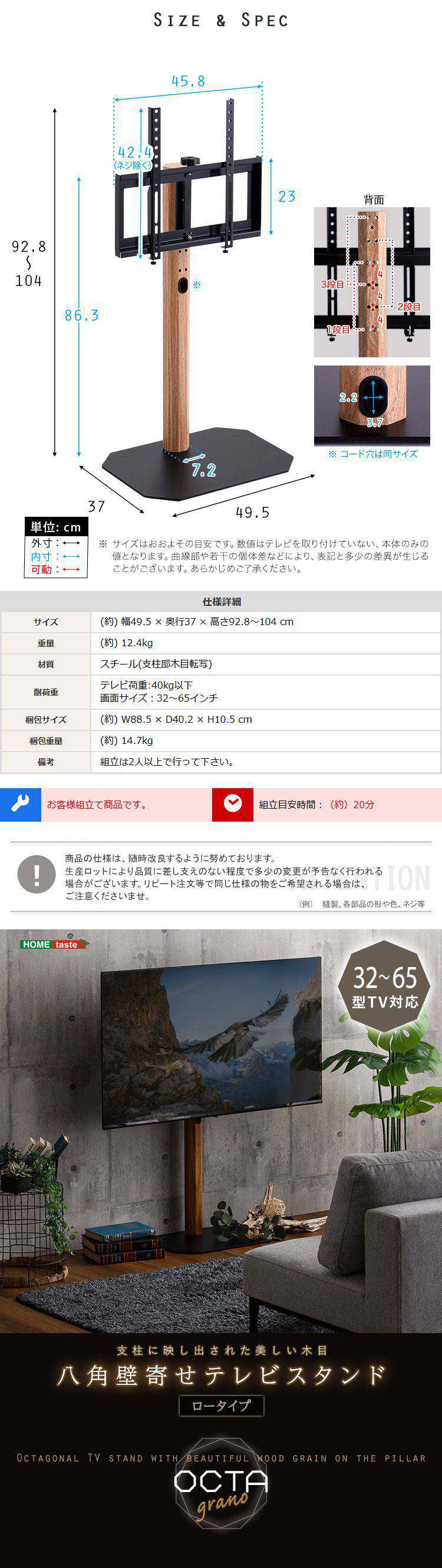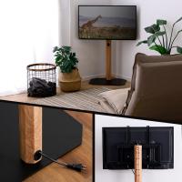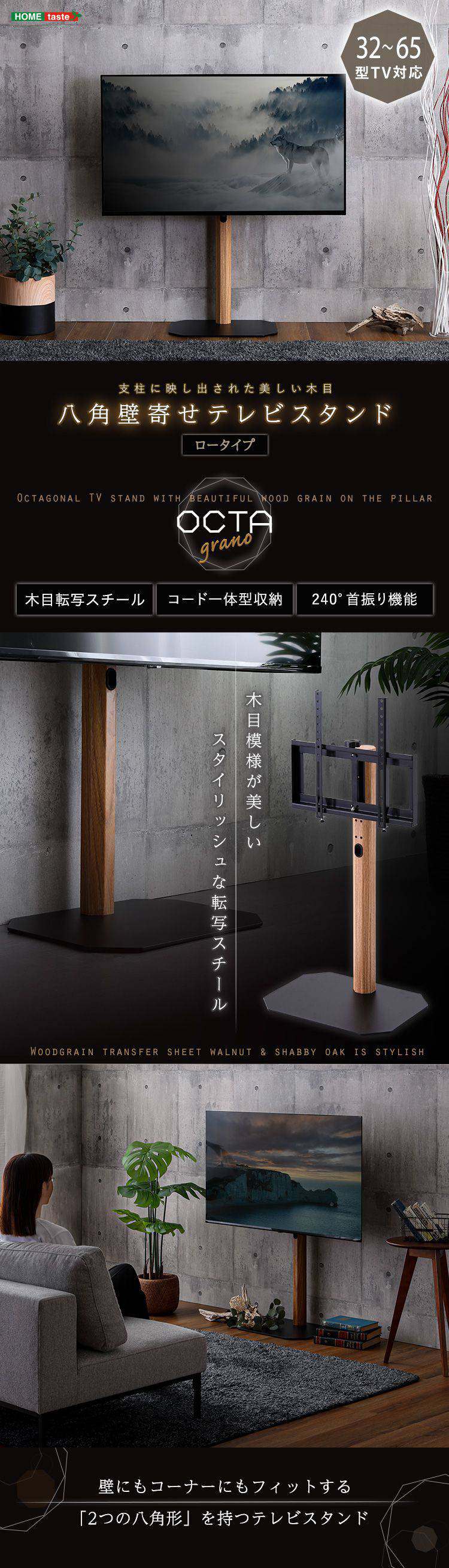 スチール支柱に木目を転写したスタイリッシュなデザインの八角テレビスタンド ロータイプです。