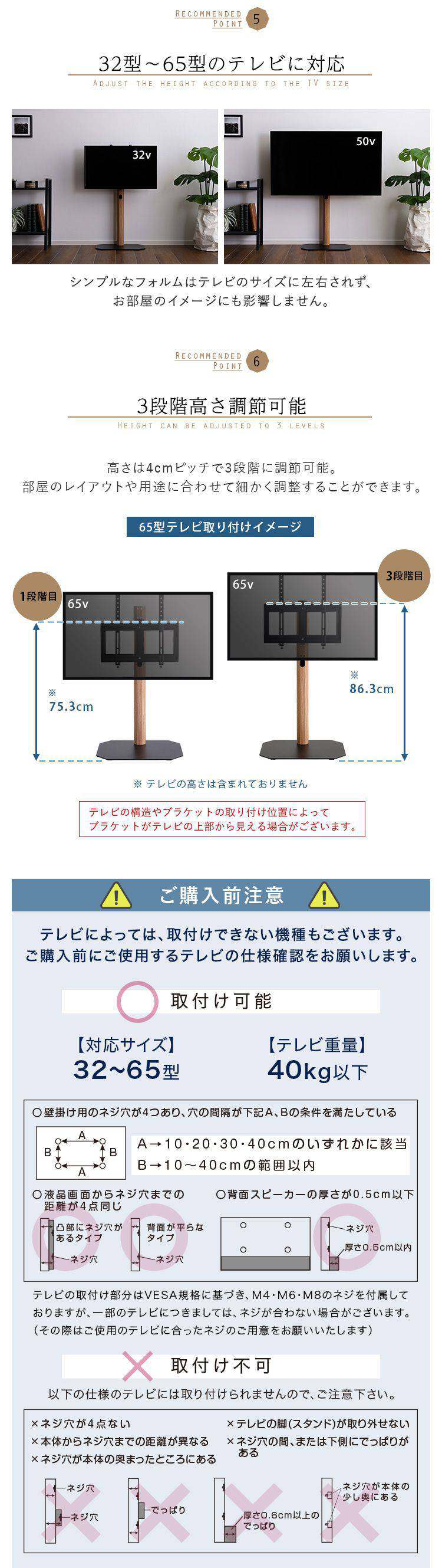 240度のスイングタイプで32〜65インチのテレビを取付できます。