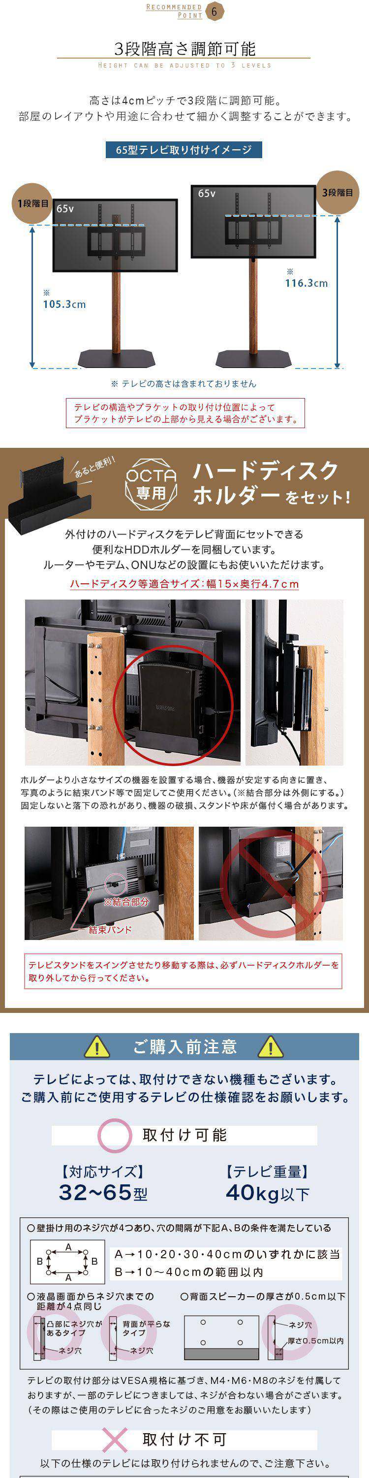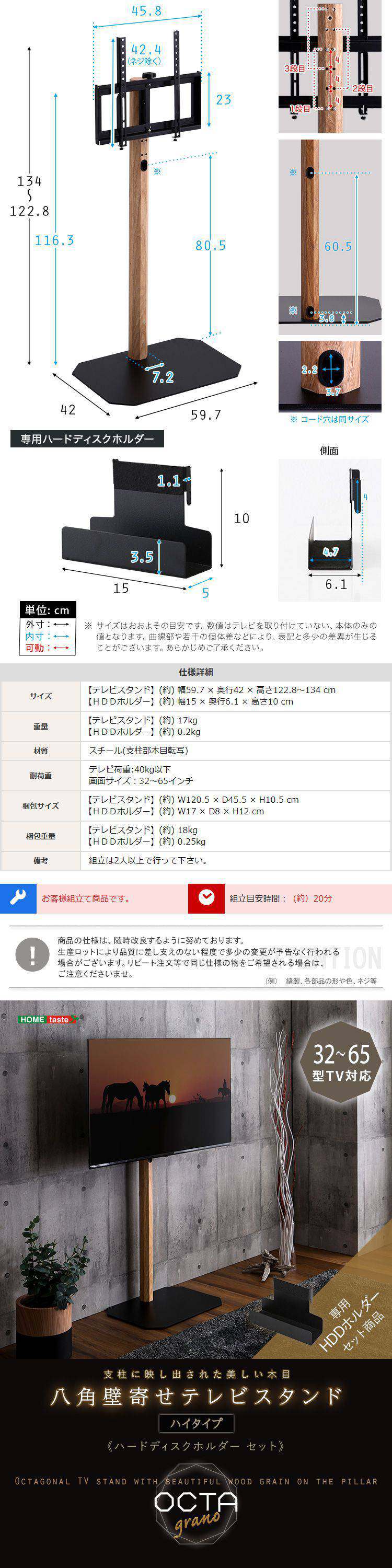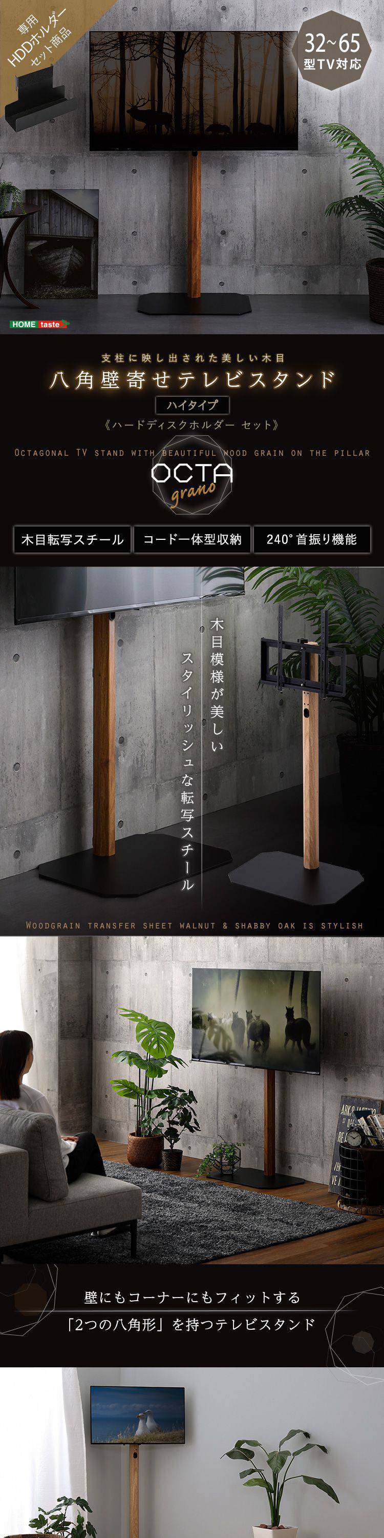 テレビスタンド ハイタイプ ハードディスクホルダー セット ヴィンテージ 八角 スタイリッシュ スイング 角度調整 高さ調整 スチール 木目調 代引不可