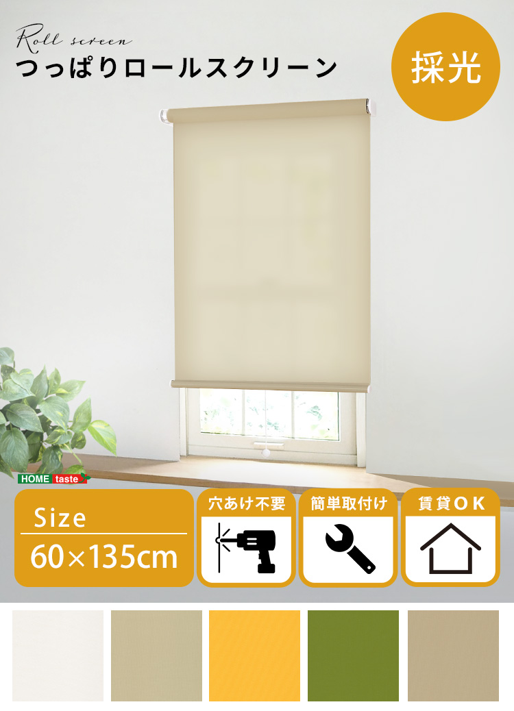 壁空け不要 つっぱりロールスクリーン 幅60cm 採光タイプ スクリーン ロールスクリーン 間仕切り ブラインド つっぱり 工事不要 取り付け簡単 賃貸OK 代引不可