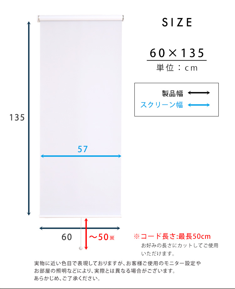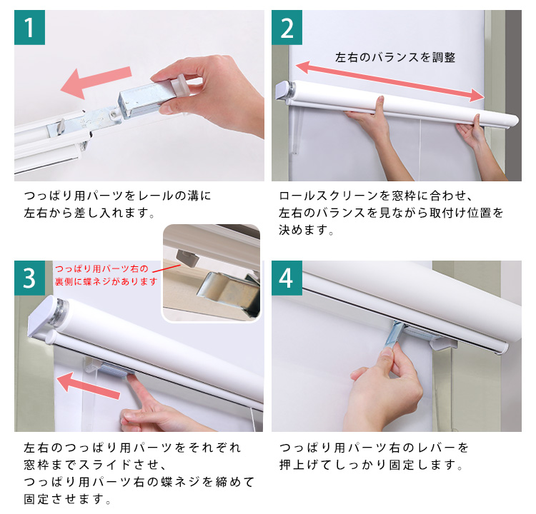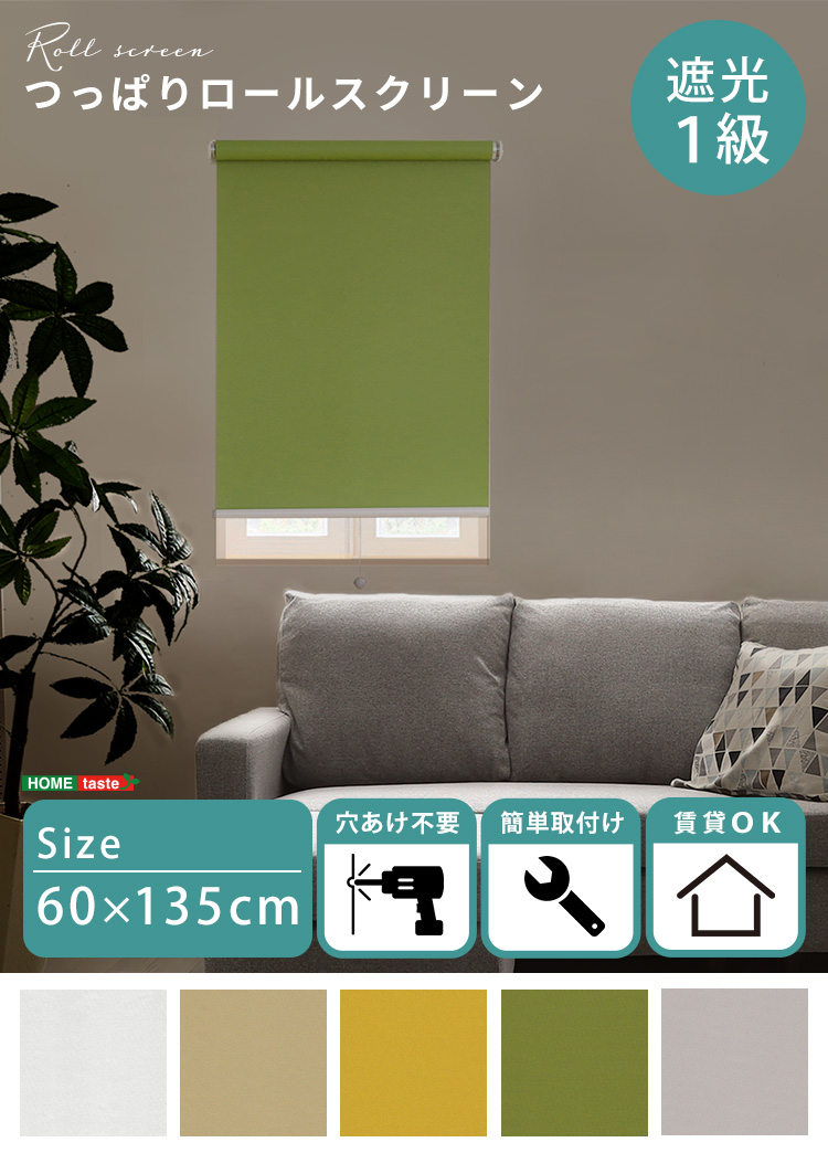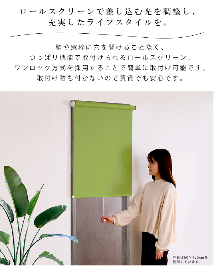壁空け不要 つっぱりロールスクリーン 幅60cm 遮光タイプ スクリーン ロールスクリーン 間仕切り カーテン ブラインド つっぱり 工事 工具 不要 取付 代引不可
