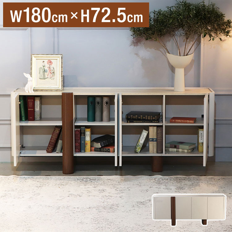 サイドボード 幅180 リビングボード キャビネット ラグジュアリー モダン 木製 大理石調 マーブルデザイン 北欧風 高級感 異素材 ミックス 代引不可