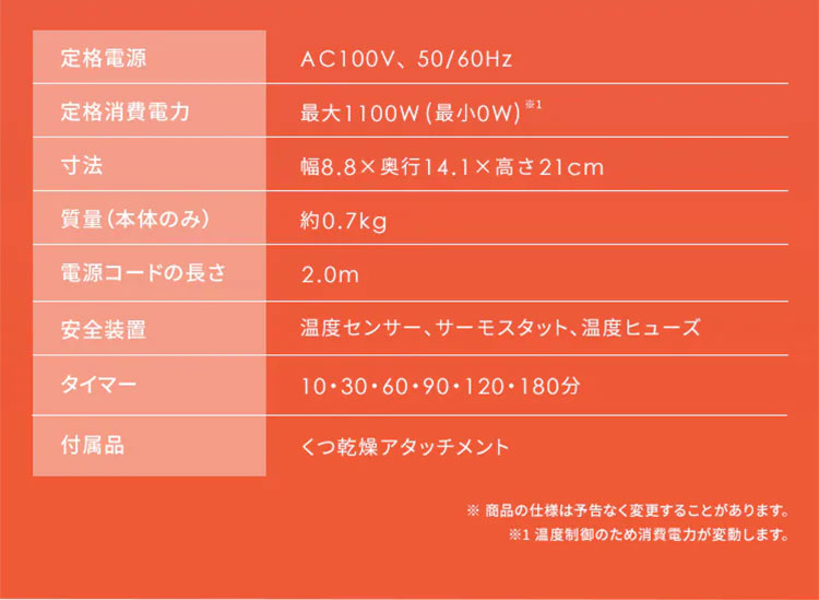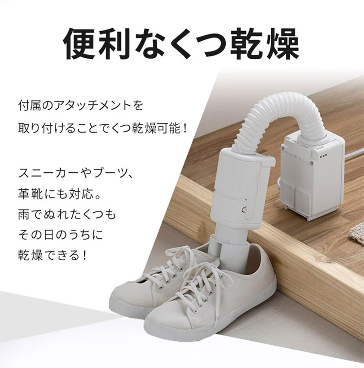 付属のアタッチメントを取り付けることでくつ乾燥可能!