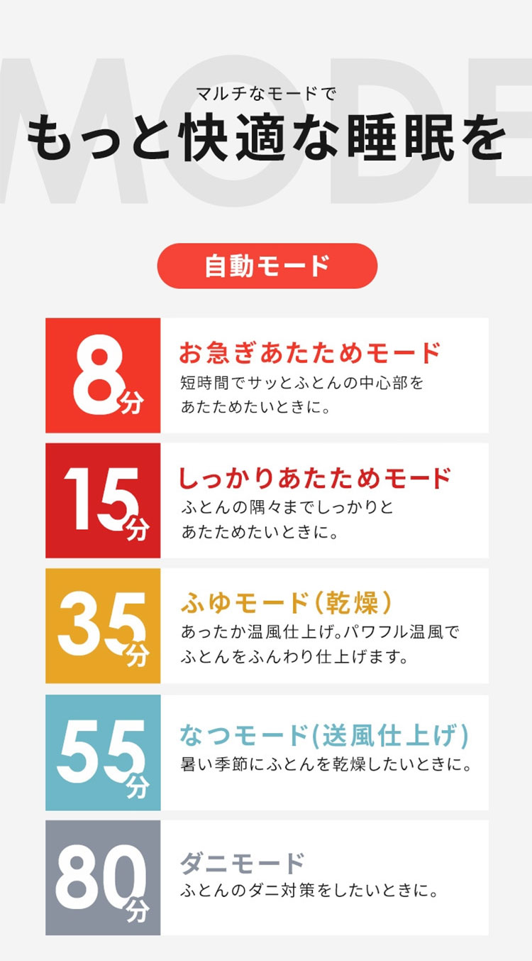 ※ダニモードの使用は1年に1〜2回、季節の変わり目にふとんを変えるときなどにすると効果的です。