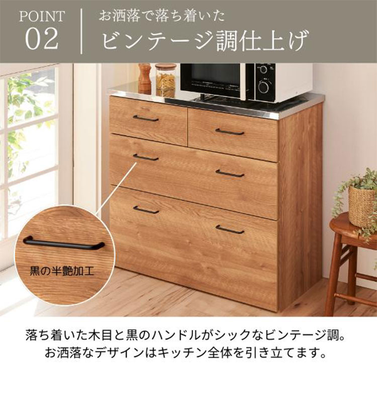 日本製 ステンレス キッチンカウンター ヴィンテージ調 90cm 北欧 おしゃれ かわいい 収納 ステンレスゴミ箱 上ラック レンジラック ダスト