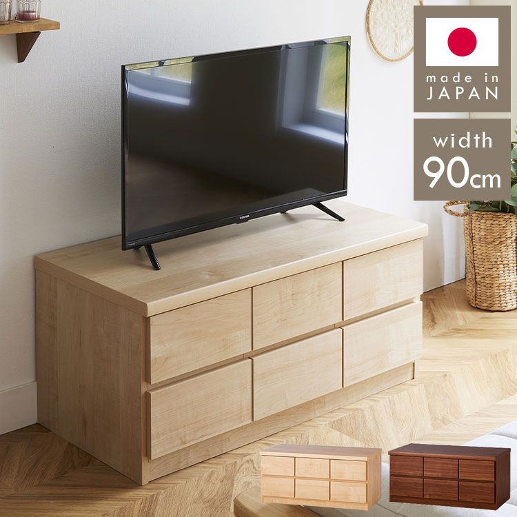 日本製 完成品 ローチェスト 2段 テレビ台 TV台 小物 衣類 収納 角丸 引出し 取っ手 タンス 箪笥 幅90cm 奥行45cm 高さ41cm 代引不可