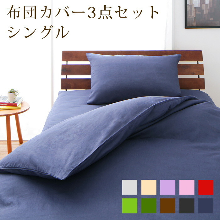 布団カバーセット シングル 天然素材のコットン100% 10色×5サイズから選べる 3点セット 綿100%