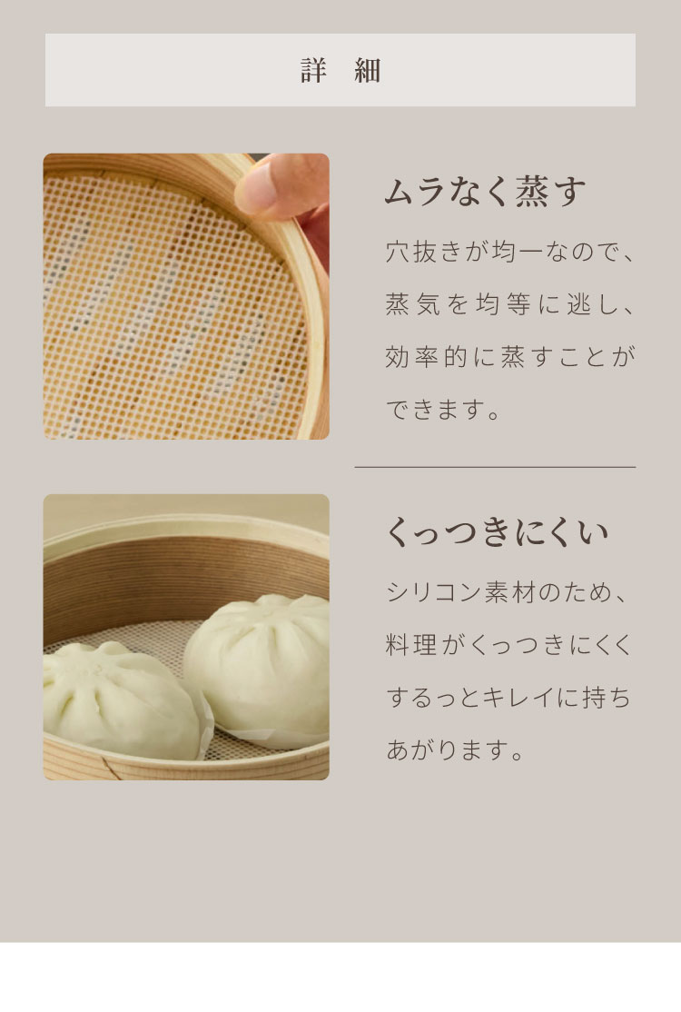 ■初めてご使用になる際や、セイロが乾燥している場合には、ご使用前に水に漬けて水分を吸わせてからお使い下さい。