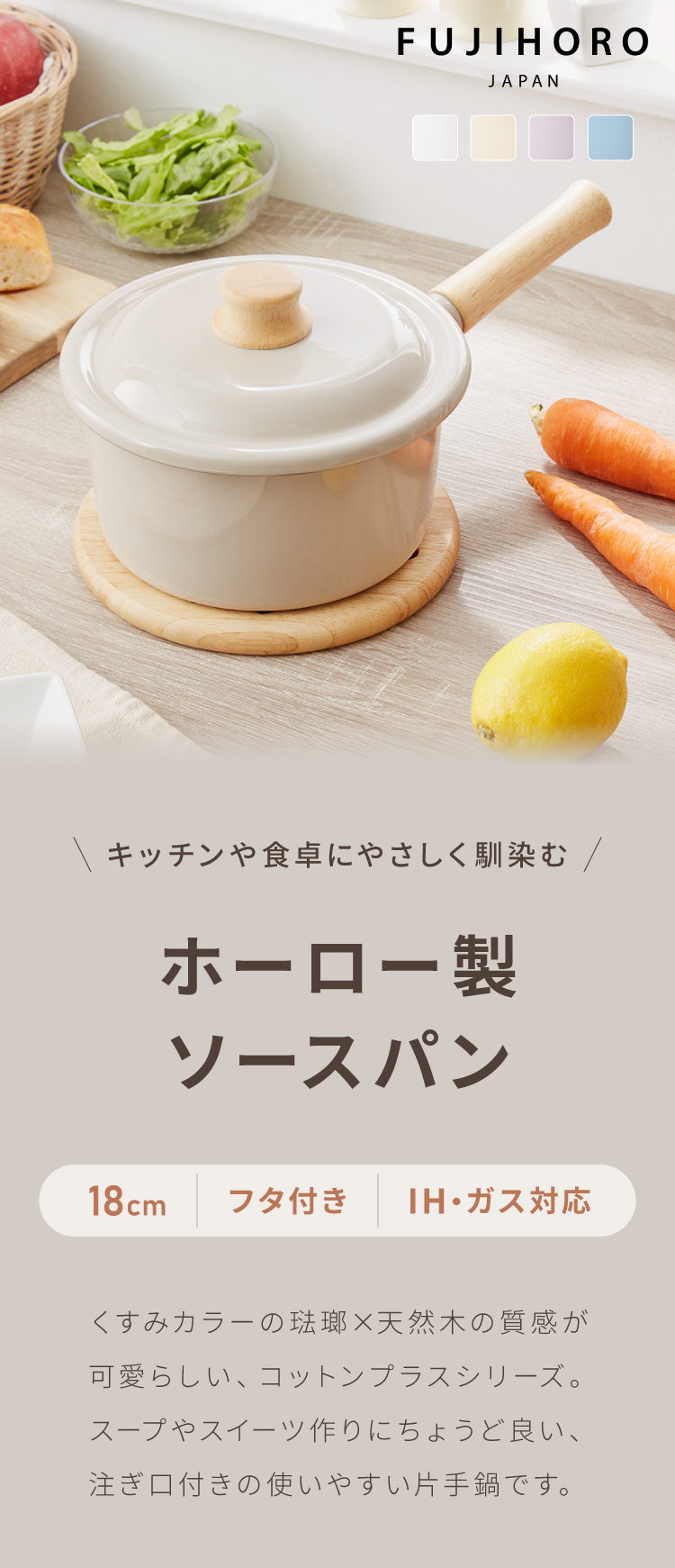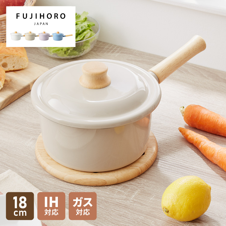 富士ホーロー コットンプラス ソースパン 18cm フタ付き ガス火・IH対応 片手鍋 ホーロー鍋 可愛い かわいい 琺瑯 ほうろう ホーロー FUJIHORO