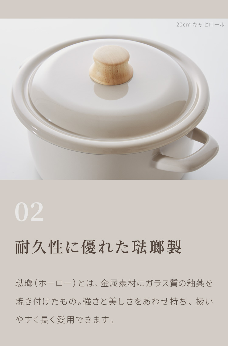 ホーロー製の鍋は熱効率にも優れ、ガス火・IH両方で使用可能です。