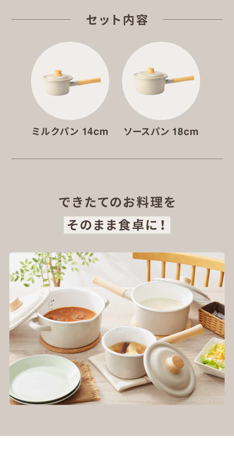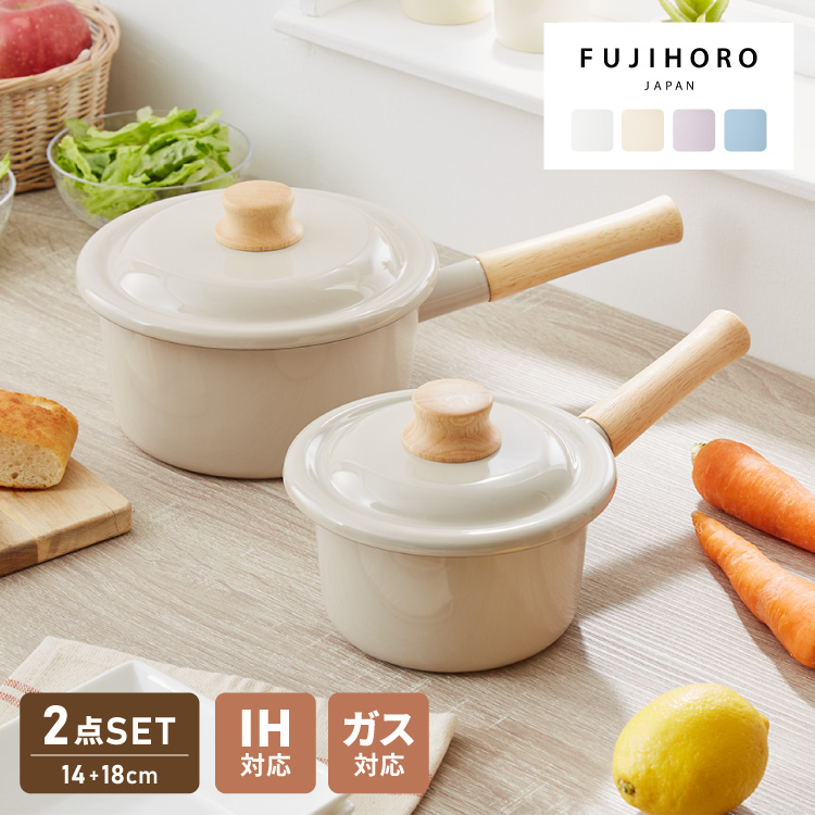 富士ホーロー コットンプラス ミルクパン14cm+ソースパン18cm 2点セット