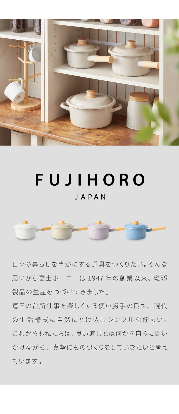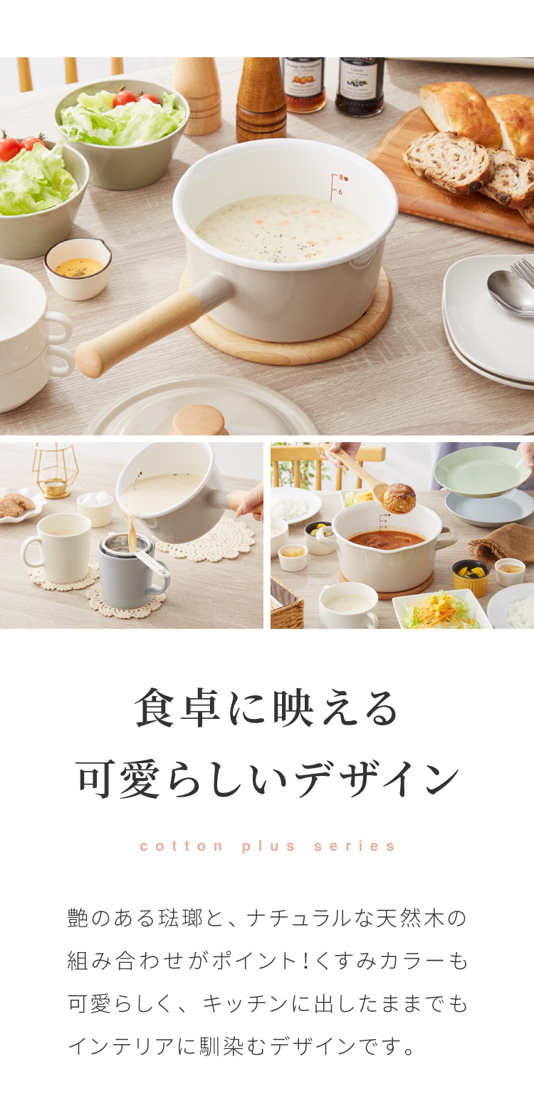琺瑯×天然木の質感が特徴のコットンプラスシリーズ。