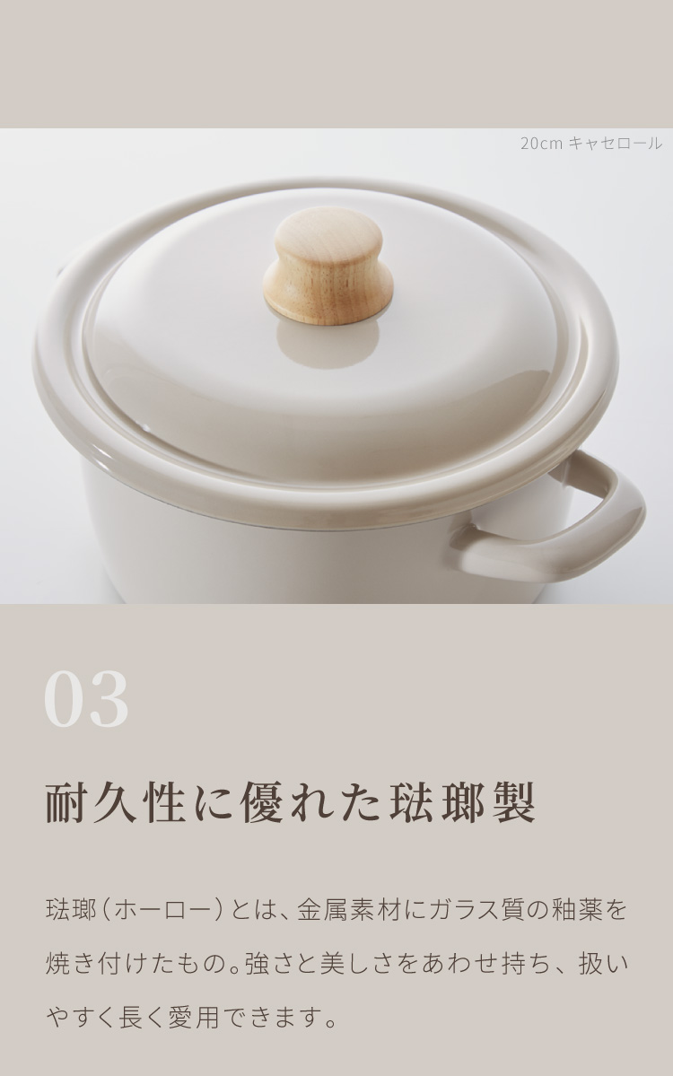 ※ホーロー製品は手作業で釉薬をかけておりますので、多少の個体差がございます。鍋本体や蓋に黒点や塗りムラが見られる場合がありますが、製造工程上避けられないもので、安心してご使用頂けます。このような理由での交換・返品はお受けできかねますのでご了承ください。