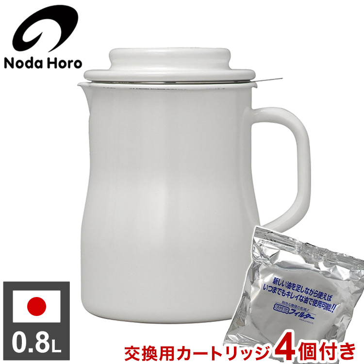 交換用カートリッジ4個付き 野田琺瑯 日本製 オイルポット 0.8L ホーロー 油こし 油入れ NOL-800 ロカポ 油こし器 琺瑯 野田ホーロー 天ぷら 揚げ物