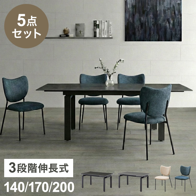 伸長式 ダイニングセット 5点セット チェア 4脚 開梱設置無料 セラミック 4人掛け 6人掛け 140cm~200cm ダイニングテーブル ダイニングチェア 代引不可