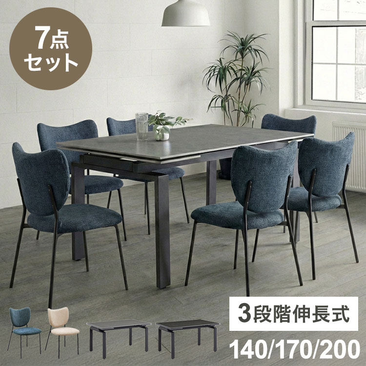 伸長式 ダイニングセット 7点セット チェア 6脚 開梱設置無料 セラミック 4人掛け 6人掛け 140cm~200cm ダイニングテーブル ダイニングチェア 代引不可