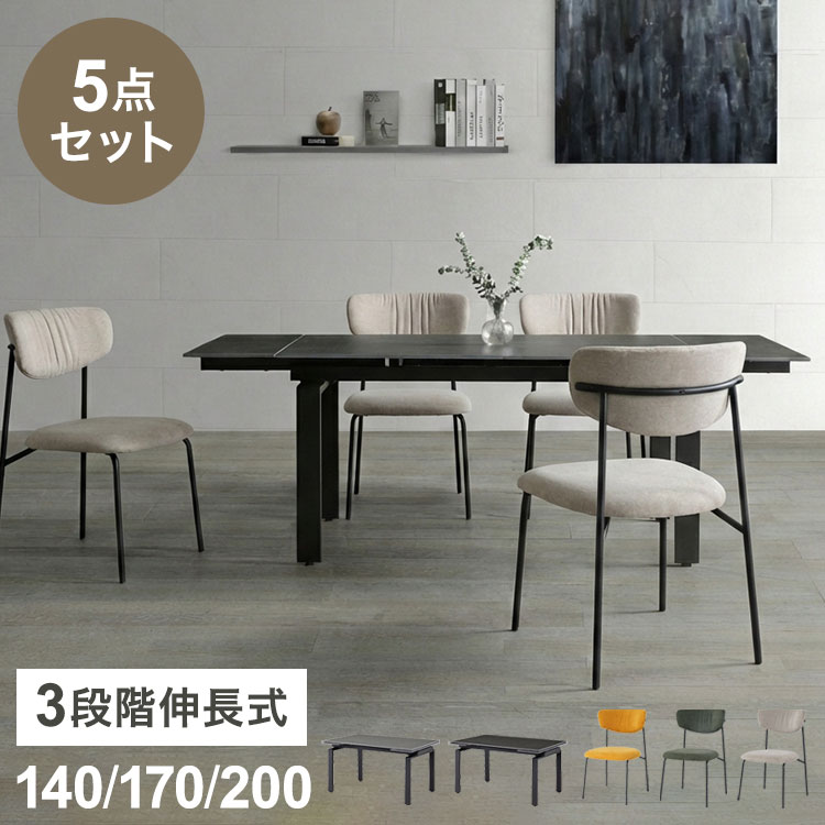 伸長式 ダイニングセット 5点セット チェア 4脚 開梱設置無料 セラミック 4人掛け 6人掛け 140cm~200cm ダイニングテーブル ダイニングチェア セット 代引不可