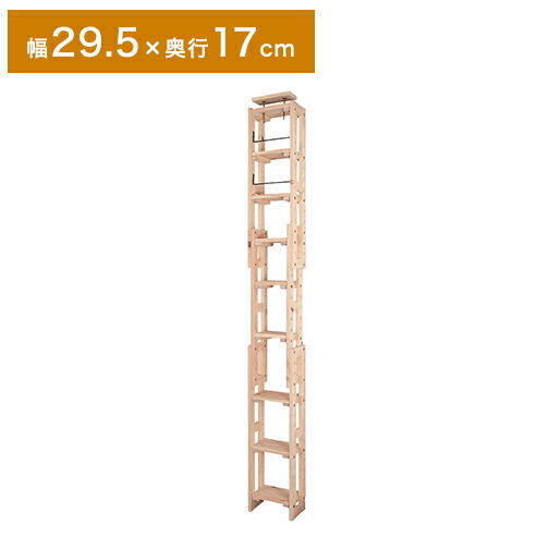 天然木 ヒノキ つっぱり シェルフ ラック 幅29.5 奥行き17 九段 9段 ブックラック 本棚 マガジンラック 北欧 おしゃれ 木製 収納 代引不可