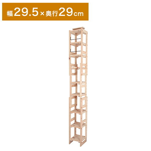 天然木 ヒノキ つっぱり シェルフ ラック 幅29.5 奥行き29 九段 9段 ブックラック 本棚 マガジンラック 北欧 おしゃれ 木製 収納 代引不可
