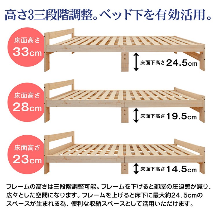 ・床面サイズ(約):幅96.5cm×長さ198cm ※床面高33cmの場合、幅96.5cm×長さ196cm ※床面高28cm、23cmの場合