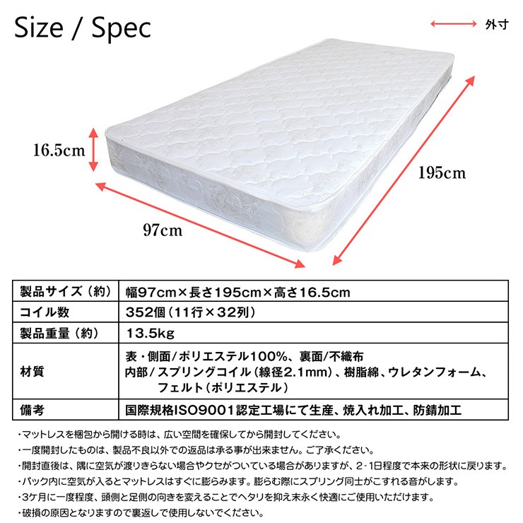 ・材質:表・側面/ポリエステル100%、裏/不織布、内部/コイルスプリング(線径2.1mm)、樹脂綿、ウレタンフォーム、フェルト(ポリエステル)