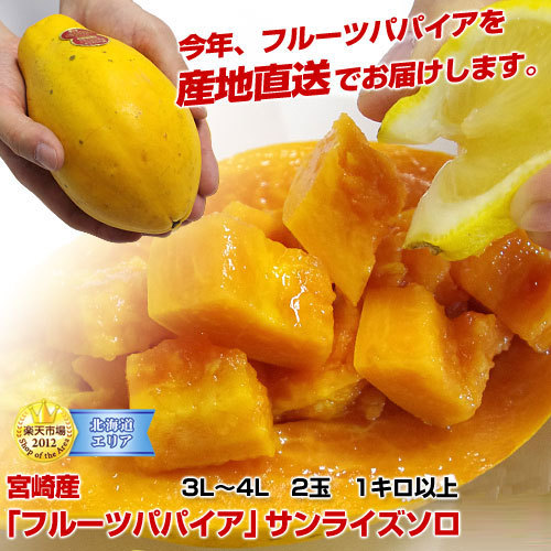 宮崎産 フルーツパパイア「サンライズソロ」3L〜4L 2玉 1kg以上