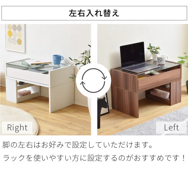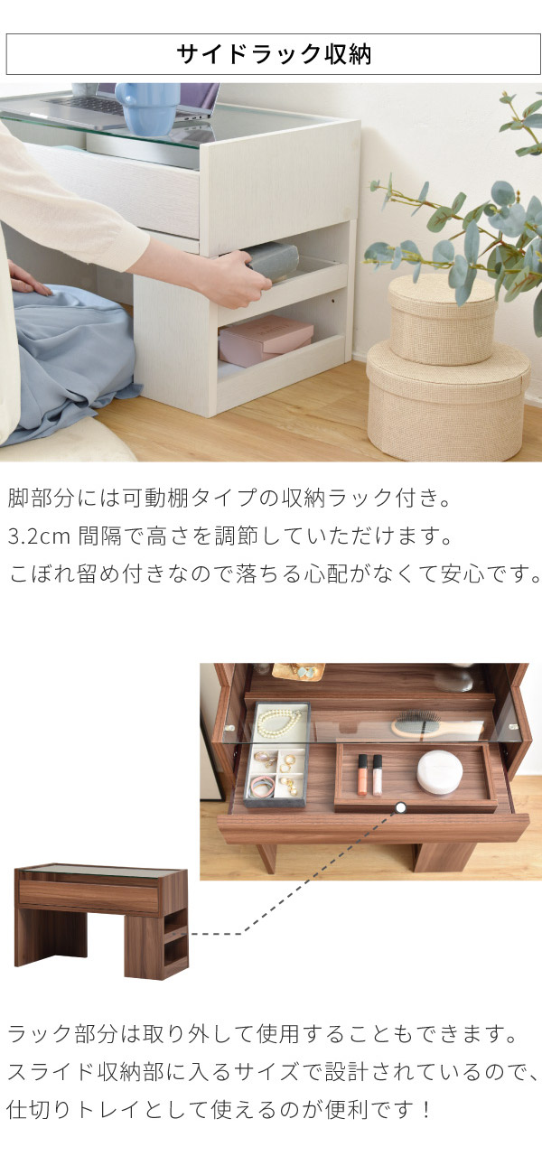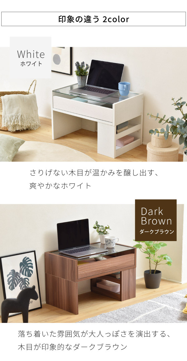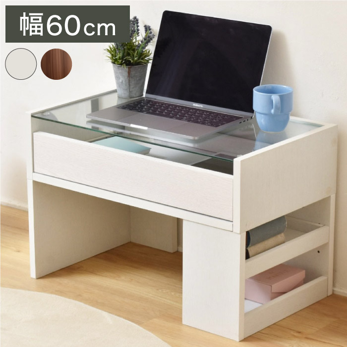 ガラスデスク ロータイプ 幅60 奥行35.5 高さ39.5 ガラス天板 ガラステーブル 引き出し ローデスク ローテーブル ドレッサー 兼 デスク 本棚付き 代引不可