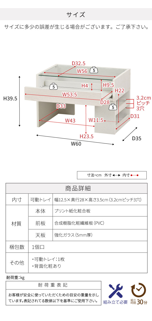 (引き出し)幅53.5×奥行28×高さ4(最大9.5)cm