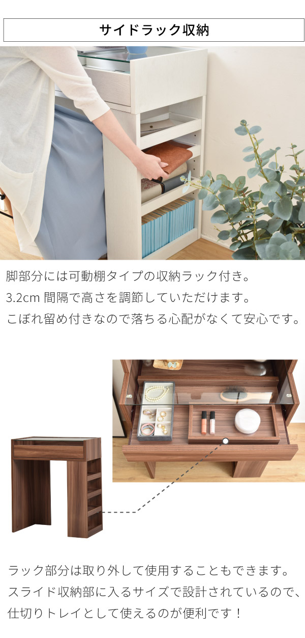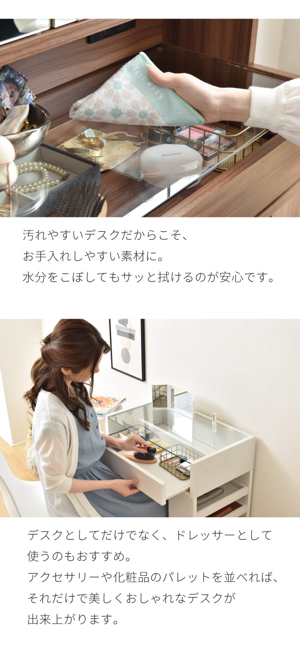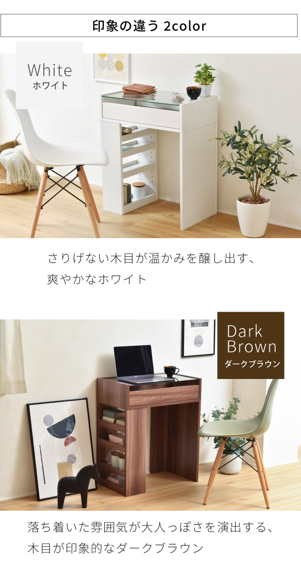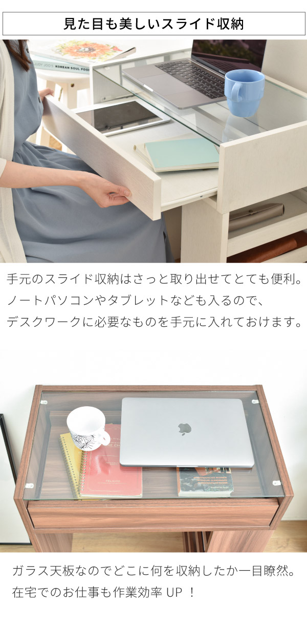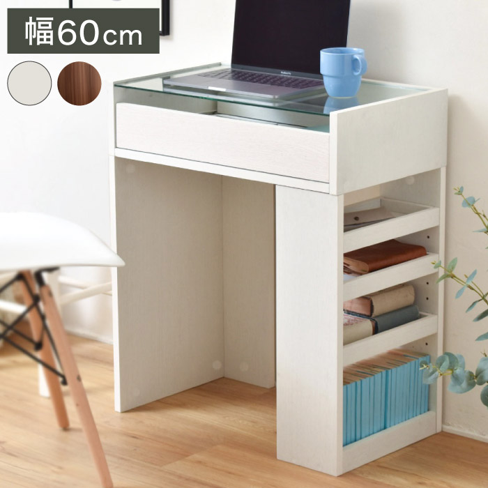 ガラス 机 ガラスデスク 幅60 奥行35 高さ71 ガラス天板 ガラストップ ガラステーブル ドレッサー 兼 デスク 引き出し 本棚付き 在宅ワーク 代引不可