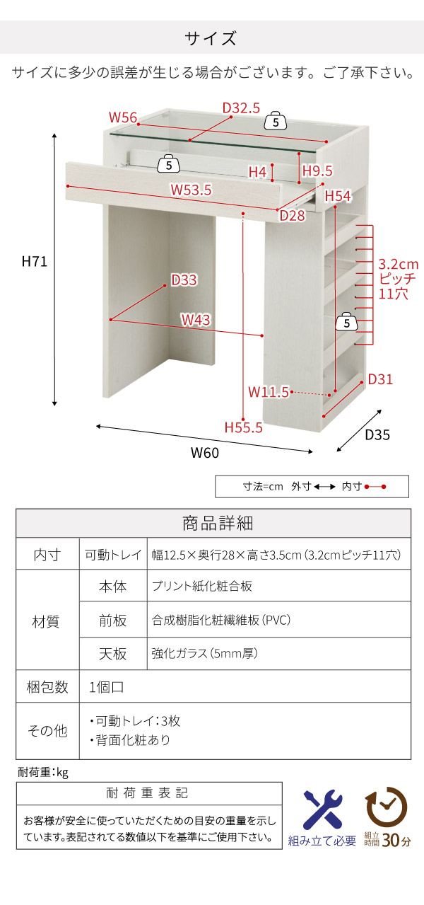 (引き出し)幅53.5×奥行28×高さ4(最大9.5)cm