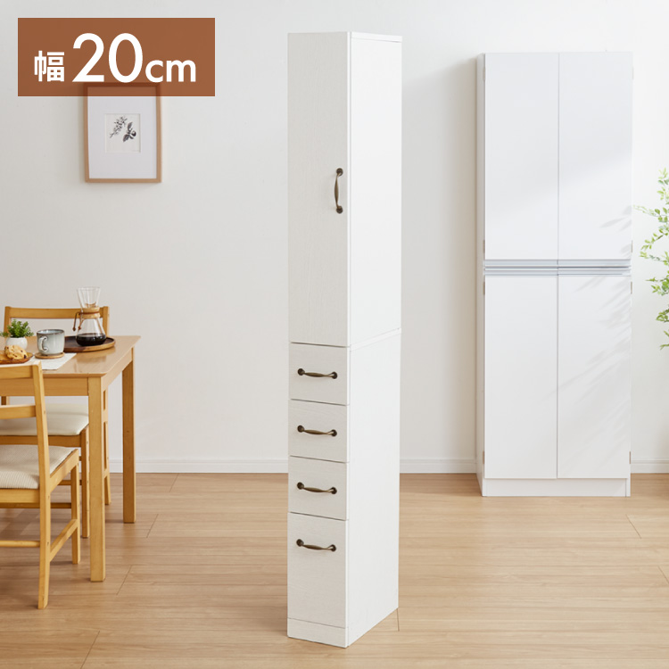 すき間収納 幅20cm スリム 食器棚 隙間収納 ラック コンパクト キャビネット ハイタイプ キッチン収納 引き出し シンプル キッチン 収納