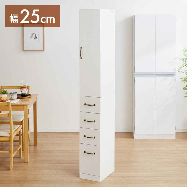 すき間収納 幅25cm スリム 食器棚 隙間収納 ラック コンパクト キャビネット ハイタイプ キッチン収納 引き出し シンプル キッチン 収納
