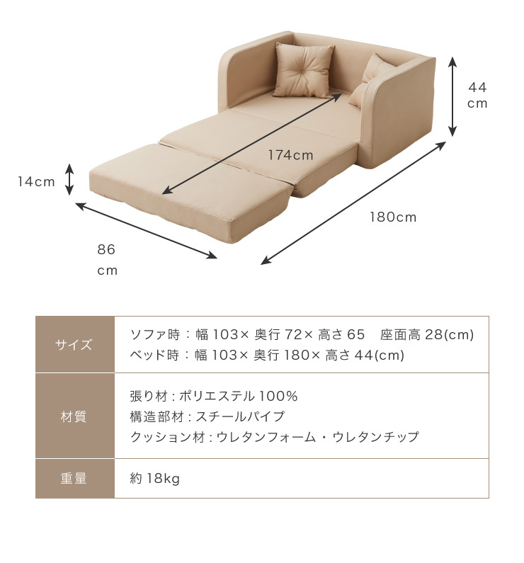 ソファ時:幅103×奥行72×高さ65 座面高28(cm)