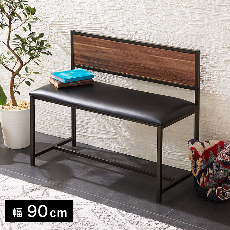 ダイニングベンチ 背付き ベンチ ハイタイプ 90cm 北欧 ヴィンテージ レザー調 クッションあり 2人用 2人掛け 椅子 ダイニング