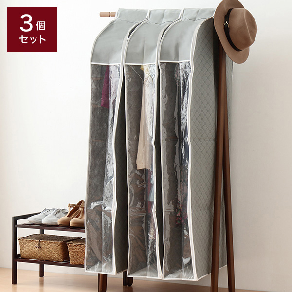 洋服カバー パッと見える 炭入り消臭 衣類カバー ロング 130 3個セット