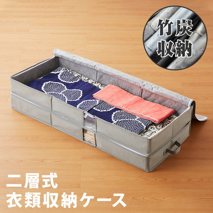 竹炭入り 衣類収納ケース 二層式 着物収納 収納ボックス 収納ケース 収納袋 布 竹炭 収納 消臭 吸湿 衣類 着物 コンパクト 二段