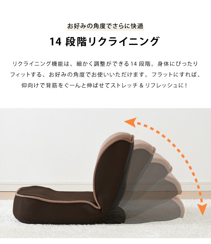 座椅子 コンパクト ハイバック 姿勢 リクライニング 14段ギア 背筋 フロアチェア 座いす 1人掛けソファ 敬老の日