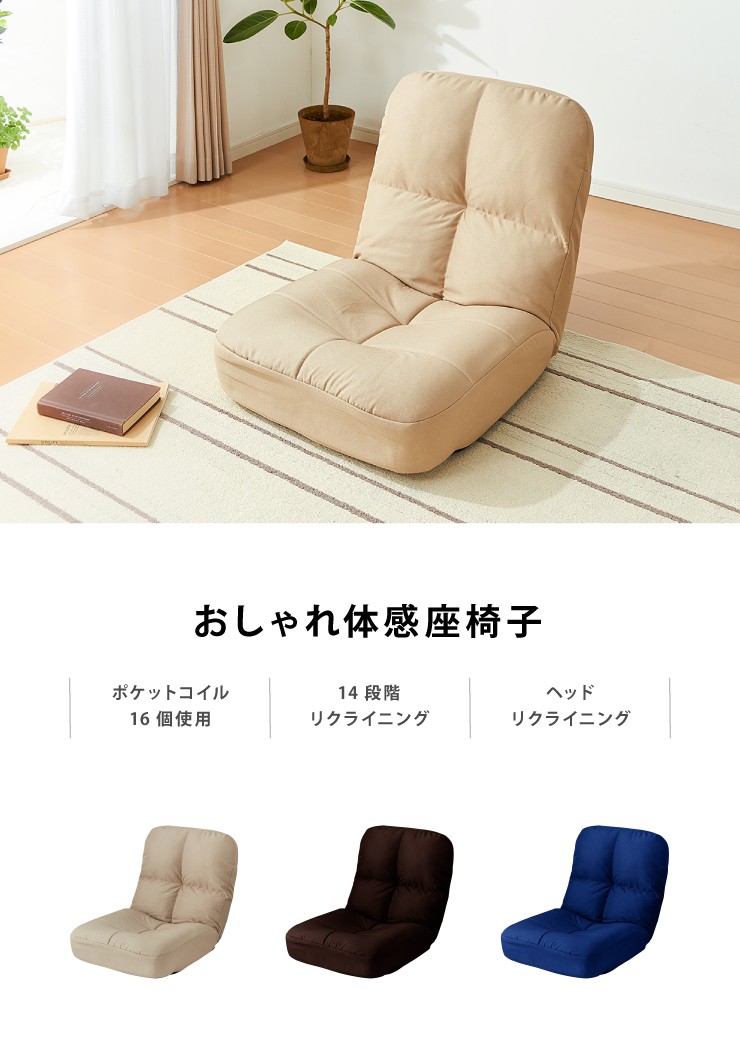 座椅子 リクライニング コンパクト ポケットコイル 腰痛 ソファ ソファー フロアソファー ローソファー 一人掛けソファー おすすめ 一人用 14段階 チェアー