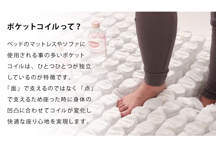 クッション材:ウレタンフォーム、ポケットコイル(4×4)16個入り