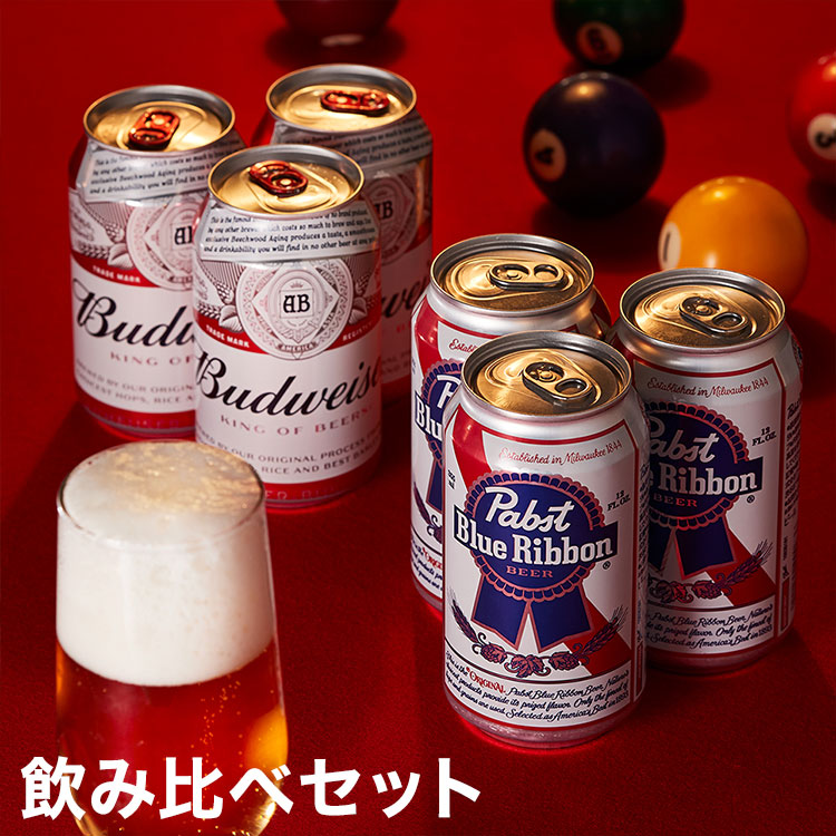 アメリカビール飲み比べ 6缶 セット バドワイザー & パブスト ブルーリボン ビール Budweiser Pabst ギフト 贈り物 プレゼント 贈答 箱入