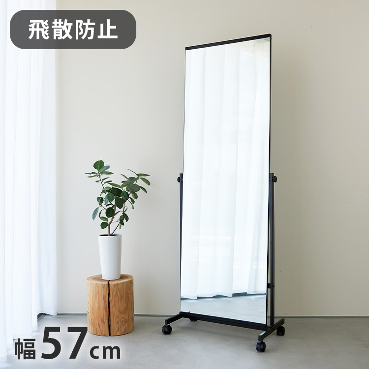 スタンドミラー 大型 幅57 奥行き36 高さ158.5 ミラー 鏡 全身鏡 姿見 スチール製 スチールフレーム キャスター付 ストッパー付 飛散防止 おしゃれ 代引不可