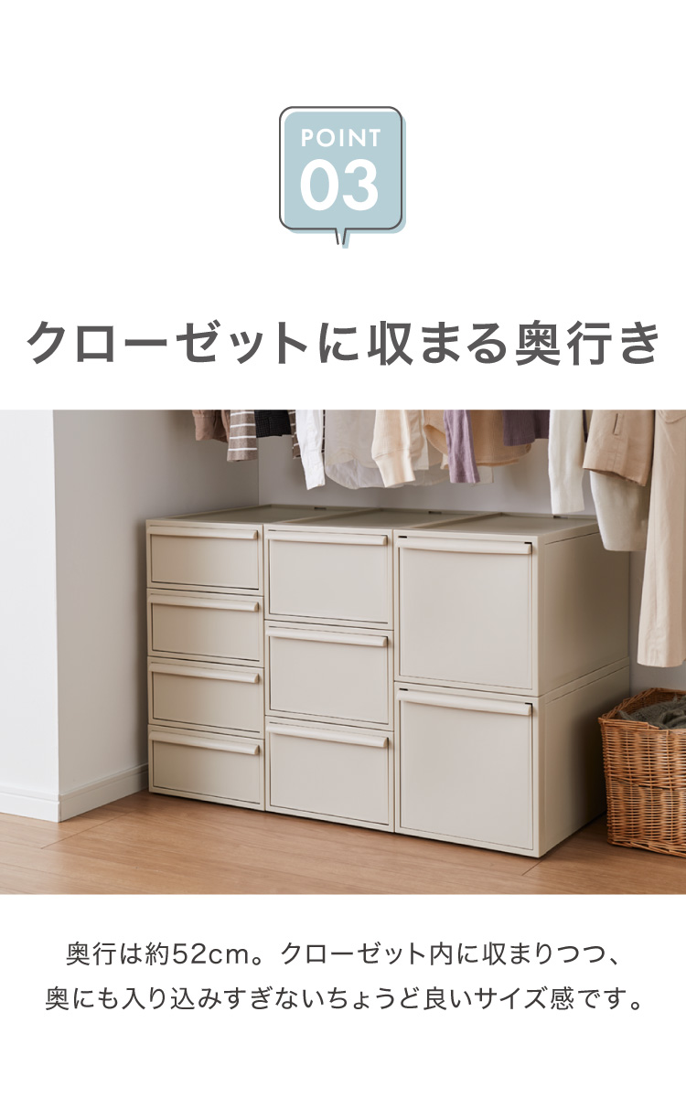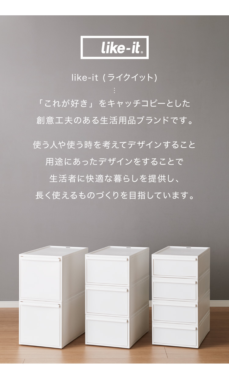 ライクイット like-it 収納ケース 引出し M 3個組 CS-D2 3P 奥行き52cm クローゼット収納にピッタ 代引不可 レビュー&報告で炭八スマート小袋 1枚プレゼント