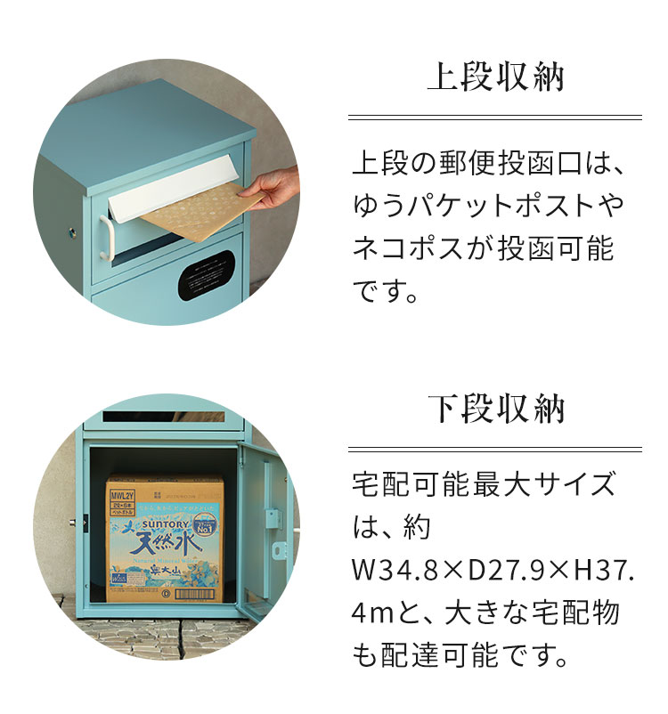 上段は郵便ポストとして利用でき、ゆうパケットポストやネコポスなどの投函に対応。